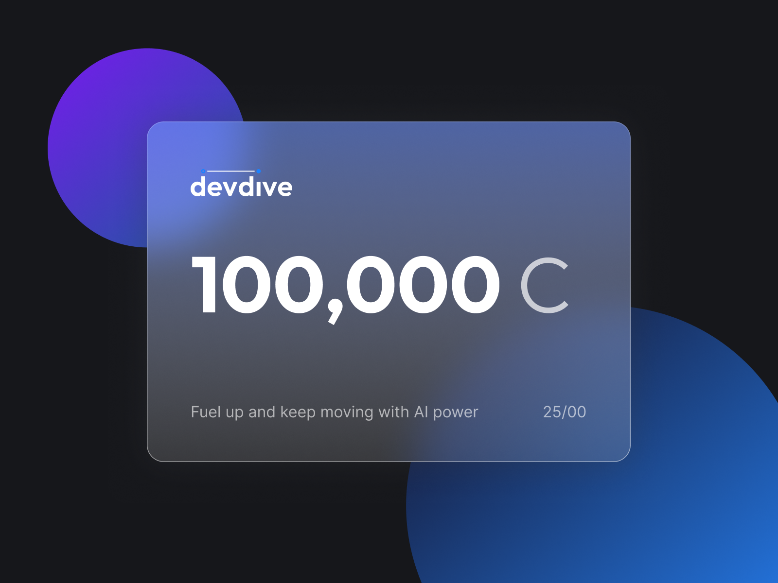 Purchase 100,000 credits to use for DevDive AI API calls.